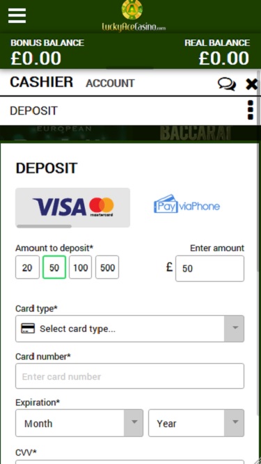 Banking銀⾏業務選項 的 LuckyAce Casino