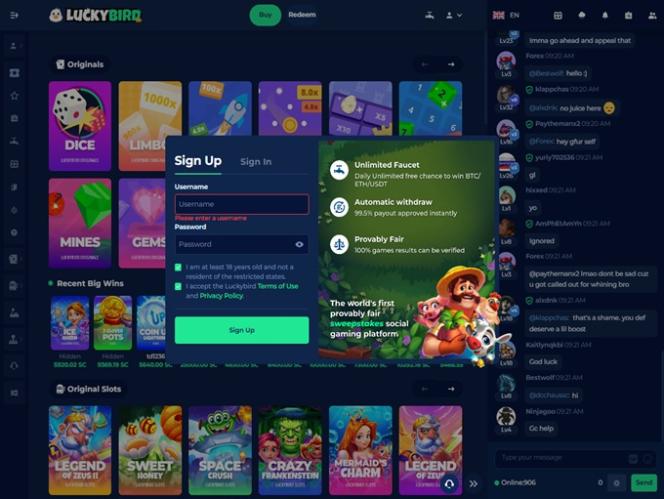 LuckyBird 是一家線上社交賭場,歡迎來自美國大部分地區的玩家,唯一的例外是華盛頓州、內華達州、愛達荷州、肯塔基州和密西根州。