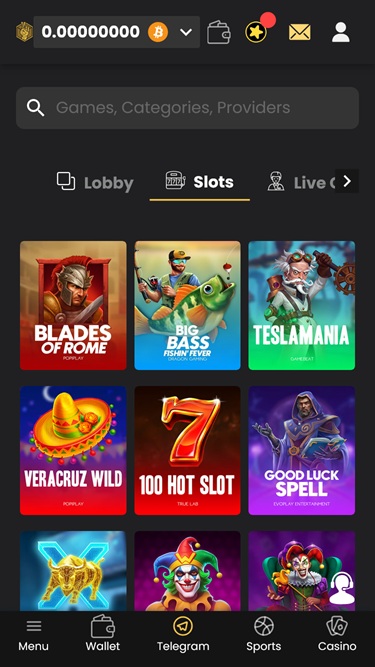 這家僅接受加密貨幣的賭場提供豐富的遊戲選擇,包括 Aviator、Plinko、Dice、Goal、Keno 等熱門加密貨幣遊戲......無論您是來玩這些現代賭場遊戲、經典賭場遊戲,還是參加精彩的體育博彩活動,請記住,所有可用內容都可以通過任何移動設備以及任何個人電腦訪問。