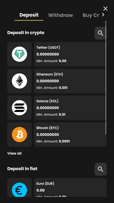 賭場收銀員僅提供加密貨幣支付,但對於尚未過渡到加密貨幣支付並使用傳統銀行服務進行線上賭博的玩家來說,這應該不成問題。營運商確保所有賭場訪客和註冊會員都能透過詳細的指南「如何購買加密貨幣」輕鬆為帳戶充值。