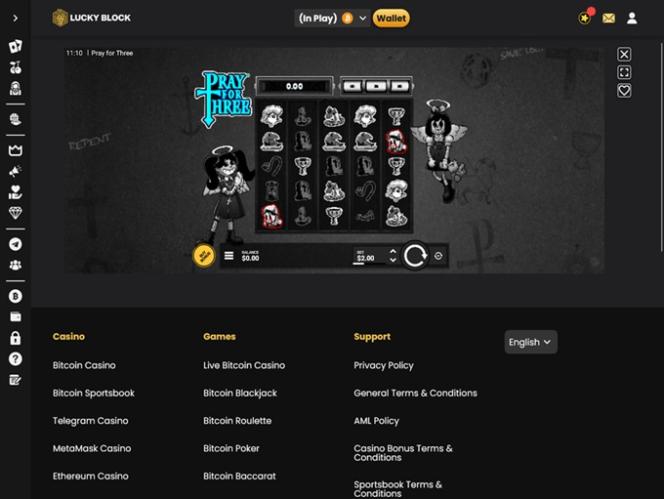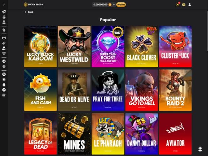 該賭場的平台採用了精美的圖形解決方案,該方案在整個營運商的賭場網路中保持一致。儘管如此,每個品牌的細節和配色方案都是獨一無二的,這為我們在 Luckyblock 的體驗提供了真實的體驗和愉悅的氛圍。
