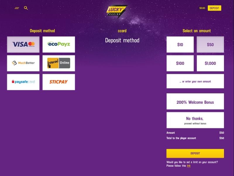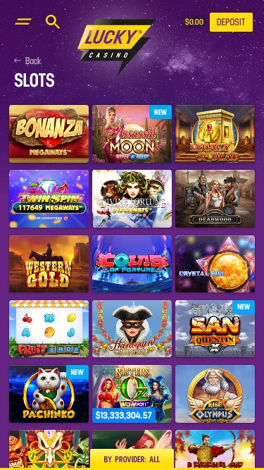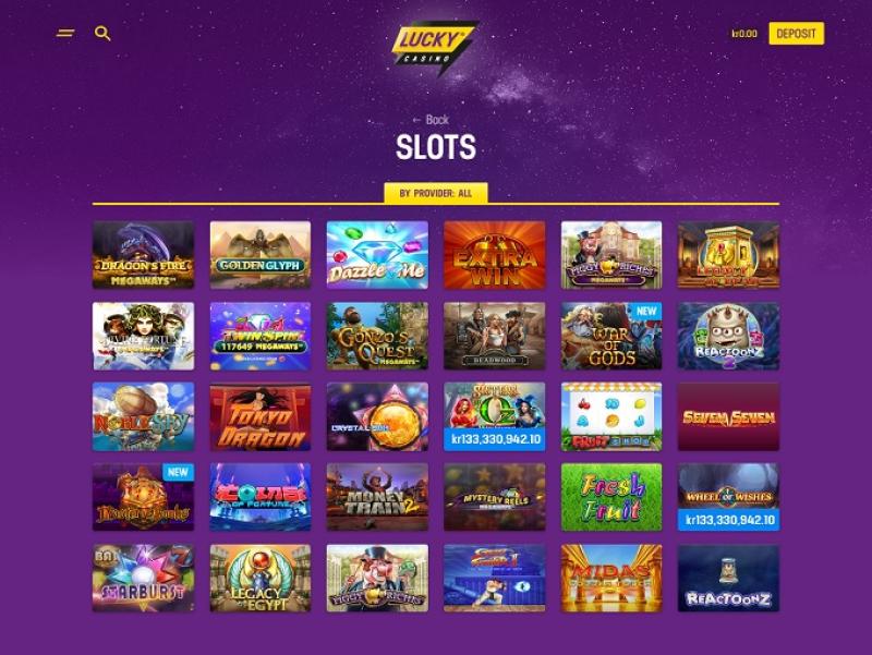 LuckyCasino 由 Microgaming, Net Entertainment, Barcrest, Big Time Gaming, ELK Studios, Evolution Gaming, Oryx, Play'n GO, Quickspin, Rabcat, Relax Gaming, Thunderkick, Yggdrasil, Booming Games, Stakelogic, Pragmatic Play, Nolimit City, Felt Gaming, Red Tiger Gaming, Spinomenal, Fantasma Games, Triple Edge Studios, Northern Lights Gaming, Stormcraft Studios, Switch Studios, Bulletproof Games, All41 Studios, Gluck Games, Gameburger Studios, Neon Valley Studios, Swintt, Shuffle Master, SpinPlay Games, GONG Gaming, On Air Entertainment, Buck Stakes Entertainment, Games Global, 2by2 Gaming, Bally Technologies, GamesOS, Leander Games, Inspired Gaming, SG Interactive, Gamomat, Red7Mobile, Scientific Games, Bally Wulff, Just For The Win, PearFiction Studios, Slingshot Studios, Fortune Factory Studios, Jade Rabbit Gaming, 4ThePlayer, AvatarUX, Gamevy, Crazy Tooth Studio, Japan Technicals Games, Alchemy Gaming, Snowborn Games, Hacksaw Gaming, Max Win Gaming, Bang Bang Games, Slotmill, Peter And Sons, Eurostar Studios, Aurum Signature Studios, Area Vegas, RAW iGaming, Print Studios, Gaming Corps, HammerTime Games, INO Games and Nailed It! Games提供支持,其遊戲透過網頁平台提供。此外,也提供行動平台,方便在智慧型手機和平板電腦上暢玩。