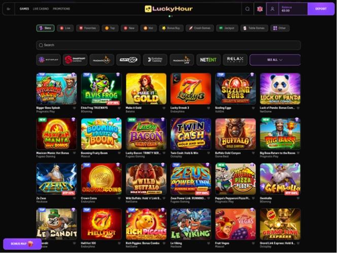LuckyHour 與Play'n GO、Quickspin、Relax Gaming、Yggdrasil、Endorphina、Wazdan等知名賭場軟體品牌合作。