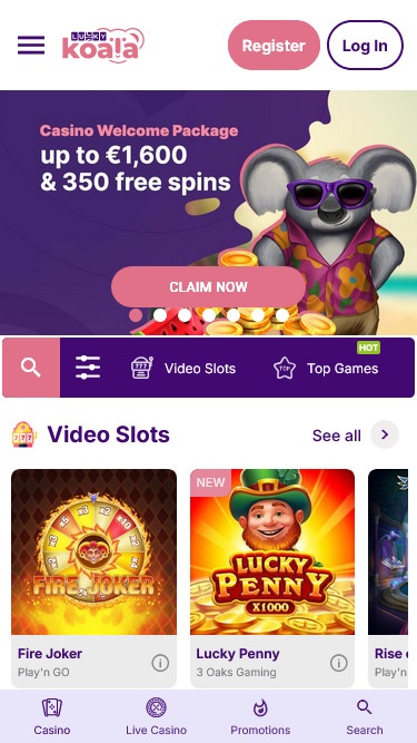 如果您想在 iOS 或 Android 行動裝置上暢玩所有遊戲,LuckyKoala 賭場已針對智慧型手機和平板電腦進行了全面優化,您一定會感到欣慰。無需下載任何應用程序,透過手機瀏覽器即可流暢運行遊戲。