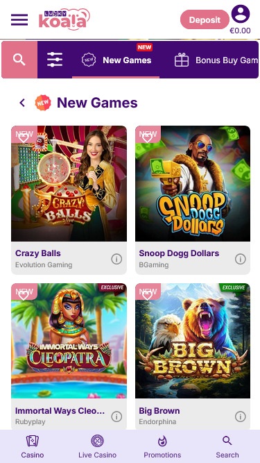 如果您只想玩老虎機,LuckyKoala 賭場可能是您的理想選擇。該品牌擁有大量優質線上老虎機供您選擇,而其龐大的軟體供應商陣容幾乎可以滿足您所有感興趣的類型和遊戲類型。不妨試試以下這些備受歡迎的老虎機遊戲: