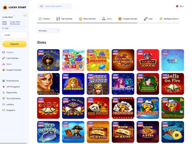 幸運的是,LuckyStart Casino 的玩家可以在眾多不同的軟體開發人員中進行選擇。 Red Tiger Gaming 、Relax Gaming、Pragmatic Play、NetEnt、PG Soft、Platipus 和 Playson 只是您將在這裡遇到的部分公司。
