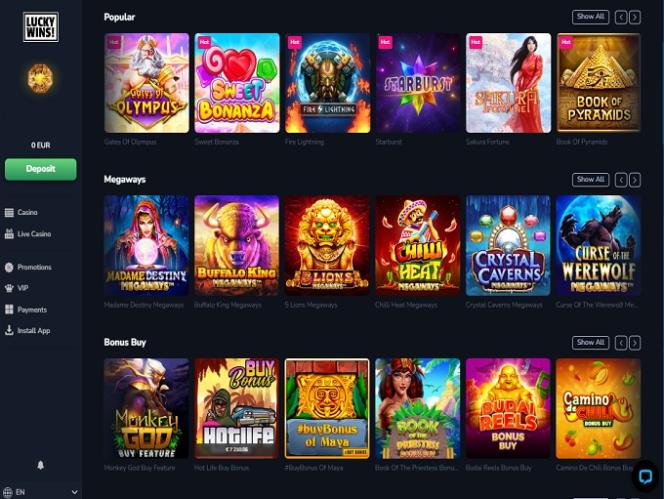 LuckyWins 賭場在這方面表現出色,玩家可以在這裡暢玩近 100 家不同的軟體供應商。這可不是個小數目,我們很少能在一個地方看到如此眾多的遊戲提供者。這裡幾乎不會讓您失望,因為這裡既有我們熟知和喜愛的所有知名遊戲,也有一些鮮為人知的遊戲,為玩家提供了大量的嘗試和刺激。