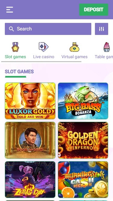 玩家可以在這裡嘗試頂級老虎機遊戲,例如:Reactoonz、Royal Coins 2: Hold and Win、Big Bass Splash、Wanted Dead or a Wild、9 Coins Hold the Jackpot、The Dog Hou$e Megaways、Legacy of Dead、Zeus the Thunderer、Zero Day、Wolf Fort、Wild Hot 40、cy of Dead、Zeus the Thunderer、Zero Day、Wolf Fortang、Wild Hot 40、96 Fortune Deluxe、Book of The Divine、Rich Wilde and the Book of Dead、Book of Gold Multichance、Luxor Gold: Hold and Win、Luxor Gold: Hold and Win、Golden Dragon Inferno、Sugar Rush、Hot Slot: 777 Crown、Seven Seven、Honey Money、Hot Hots, Olopus, Oloage, 1017, 105 Bonanza、Lucky Cat、Chaos Crew、Burning Slots Ca$h Me$h、Rise Of Olympus 100、Stunning Hot Remastered、Poseidon's Rising、Bigger Bass Bonanza、Leprechaun's Coins、Age Of Pirates、Sweet Bonanza、Chickens、The Doged Trepnesss、The Dog Hous、Charkoo Fruits、American Spirit、Aztec Mystery、Blood、4th and Goal、Alice In DreamLand、Cave Of Fortune、A Beautiful Mind、Big Wild Buffalo、Safari Sam 2、Alien Fruits、All Lucky Clovers、King Cobra、15 Dragon Pearls: Hold and Win、35、A Lucstroky Clovers、King Cobra、15 Dragon Pearls: Hold and Win、35、A Lucstroky、Giv. Kiss、20 Clovers Hot 等等。
