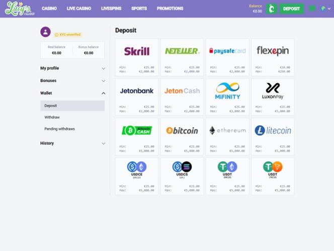 賭場的出納員取決於國家/地區,但無論您屬於哪個司法管轄區,您都可以從眾多可用的付款方式中進行選擇,包括流行的加密貨幣和加密錢包: