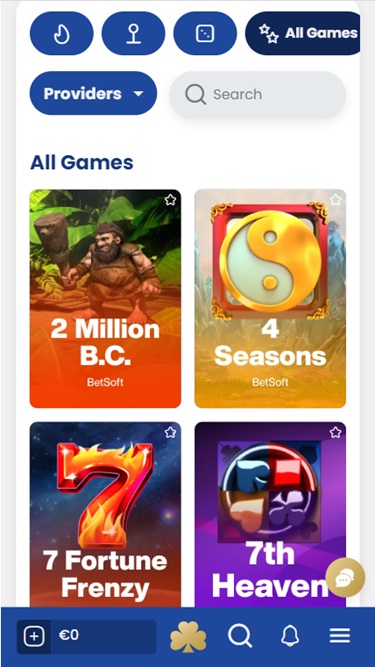 平台的整體佈局易於瀏覽,所有重要頁面、類別和資訊均清晰可見。即使沒有線上賭博經驗的用戶也能輕鬆找到賭場的玩法——這在我們看來是一大優勢。