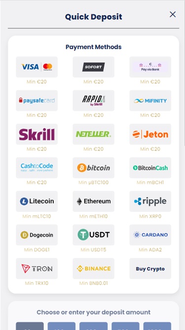 手機遊戲玩家只需透過 iOS 和 Android 瀏覽器造訪網站即可建立帳戶,享受品牌提供的所有服務。整個平台已針對行動體驗進行了全面優化,因此如果您更喜歡透過行動方式而非桌面方式進行遊戲,則無需犧牲任何體驗。