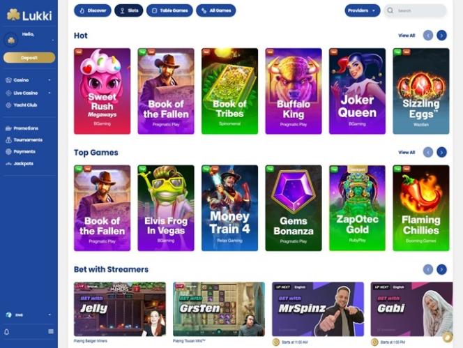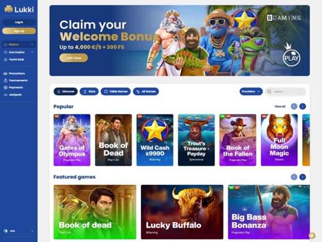 Lukki Casino 的主頁提供了玩家所需的一切。您可以查看最熱門的促銷活動,瀏覽所有最新、最受歡迎的產品,以了解有哪些軟體供應商,並了解有關該品牌的所有重要資訊。