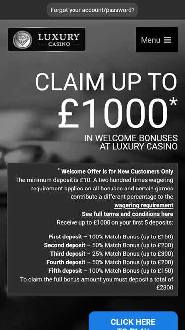 以下是Luxury Casino⺫前所提供的促銷優惠。