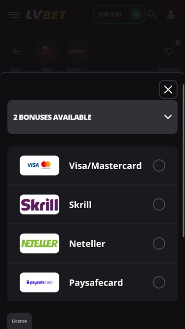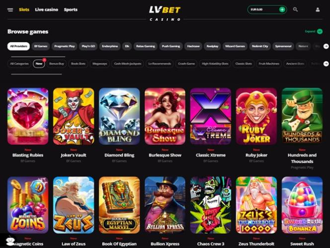 LV Bet Casino 由 Microgaming, Net Entertainment, 1x2gaming, Big Time Gaming, ELK Studios, Evolution Gaming, EYECON, Ezugi, Novomatic, Oryx, Play'n GO, playson, Relax Gaming, Thunderkick, Endorphina, Wazdan, Betgames, Booming Games, Stakelogic, Pragmatic Play, Nolimit City, Red Tiger Gaming, Spinomenal, Red Rake Gaming, Skillzzgaming, Fantasma Games, FunFair, Kalamba, Skywind, Spinmatic, Triple Edge Studios, BGAMING, Northern Lights Gaming, Fazi, Evoplay, Stormcraft Studios, Switch Studios, Pocket Games Soft, All41 Studios, Gluck Games, Gameburger Studios, Pulse 8 Studios, Neon Valley Studios, Swintt, SpinPlay Games, SmartSoft Gaming, GONG Gaming, Blue Guru Games, On Air Entertainment, Holle Games, Buck Stakes Entertainment, Elysium Studios, Games Global, Wizard Games, Ainsworth, Blueprint Gaming, Greentube, Leander Games, Pariplay, Push Gaming, Gamomat, Reel Time Gaming, BF Games, Bally Wulff, Iron Dog Studio, Old Skool Studios, Foxium, Just For The Win, Storm Gaming Technology, Wild Streak Gaming, Slingshot Studios, Fortune Factory Studios, Green Jade Games, RubyPlay, 4ThePlayer, Gamevy, Crazy Tooth Studio, NetGaming, ReelPlay, Japan Technicals Games, Alchemy Gaming, Black Pudding Games, Snowborn Games, Hacksaw Gaming, Gold Coin Studios, Half Pixel Studios, Slotmill, Peter And Sons, Eurostar Studios, Aurum Signature Studios, Lucksome Gaming, Area Vegas, RAW iGaming, ELA Games, Leap Gaming, Spribe, Circular Arrow, Gaming Corps, HammerTime Games, Nailed It! Games, Atomic Slot Lab, Neko Games, Reel Kingdom, Oros Gaming, Indigo Magic, Kitsune Studios and Sneaky Slots提供支持,該網站擁有基於網頁的即時遊戲平台,可直接透過您的網頁瀏覽器載入。無需下載任何軟體,即可流暢運作。該網站還支援行動遊戲,您可以透過智慧型手機或平板電腦進行投注。