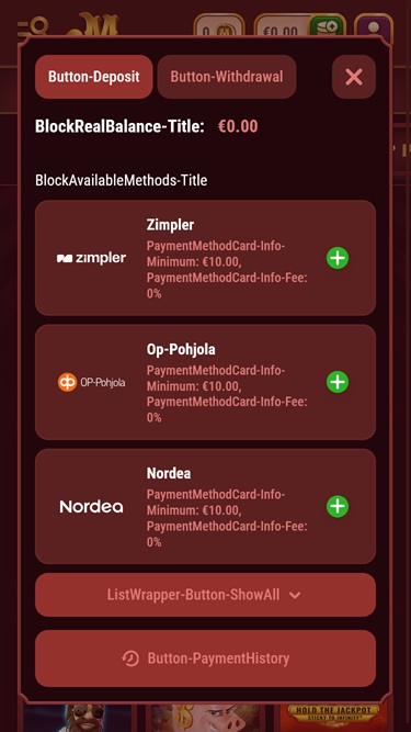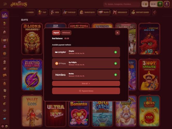 Magius 服務全球廣泛的賭場玩家和體育博彩玩家,提供豐富的付款方式,接受多種法定貨幣和加密貨幣。像往常一樣,您在收銀台看到的選項清單可能會因居住國家/地區而異,但請放心,您一定能輕鬆找到最適合自己的付款方式。如果您不確定哪種銀行方式最適合您所在地區,請隨時聯絡客服尋求協助。