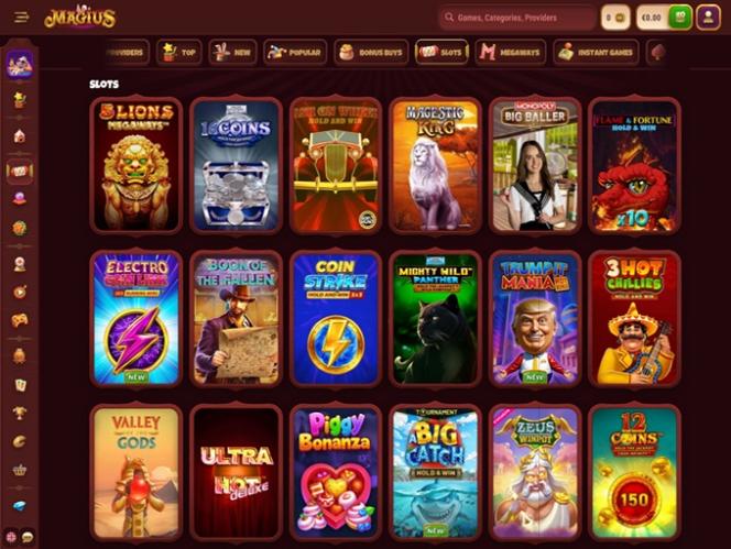 Magius Casino 幾乎成功匯聚了所有頂級軟體供應商,擁有大量遊戲資源,涵蓋所有你能想到的和想不到的遊戲。大廳裡充滿了刺激的老虎機、身臨其境的真人荷官賭桌,以及公平公正的即時遊戲。
