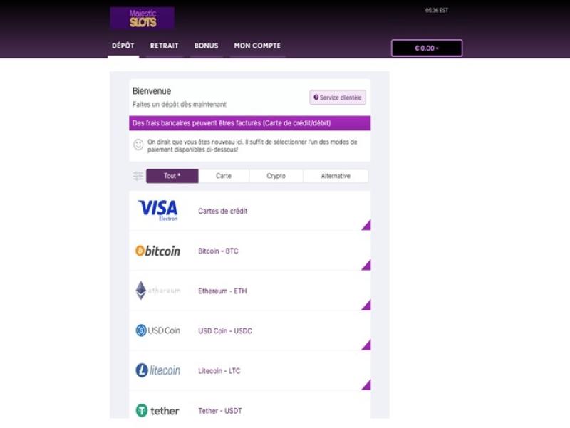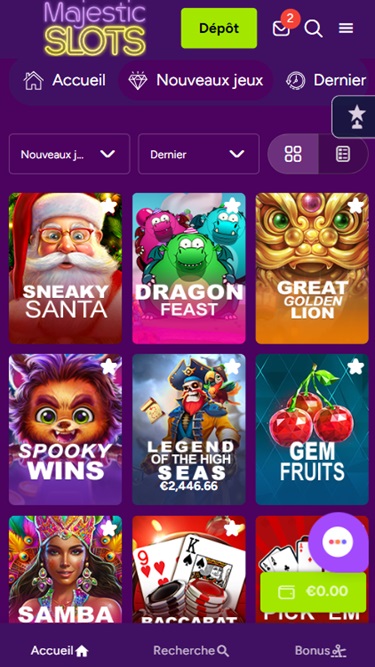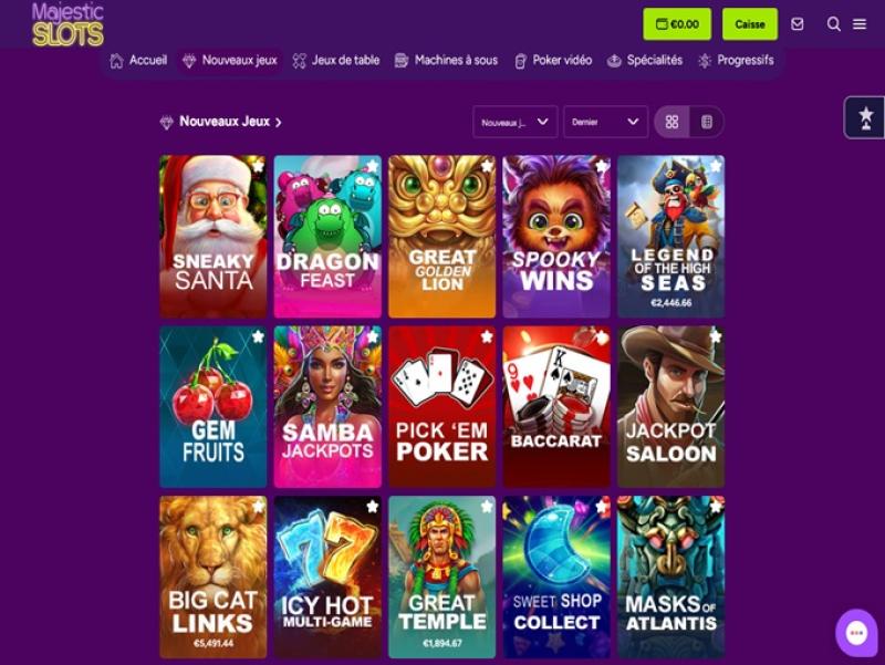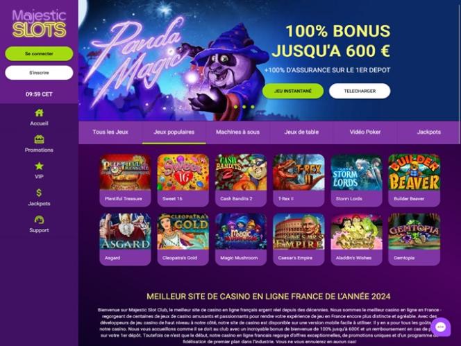 Majestic Slots Casino 是一個線上博彩網站,成立於 2012 年,專注於法國博彩市場。這家賭場外觀華麗,提供豐富的遊戲選擇、快速的賠償時間和卓越的客服支持,是個值得一玩的好去處。