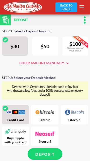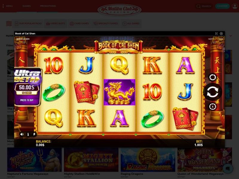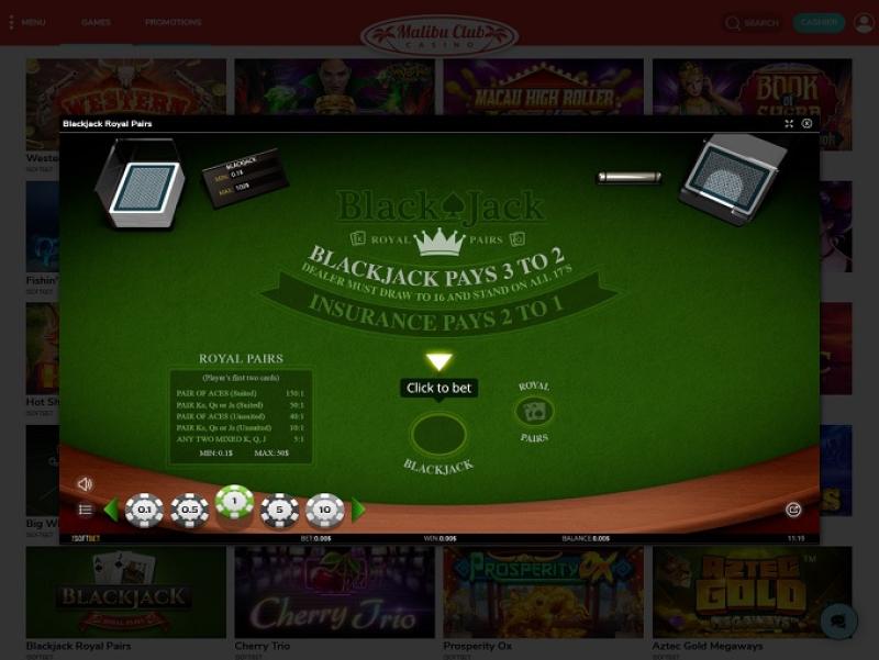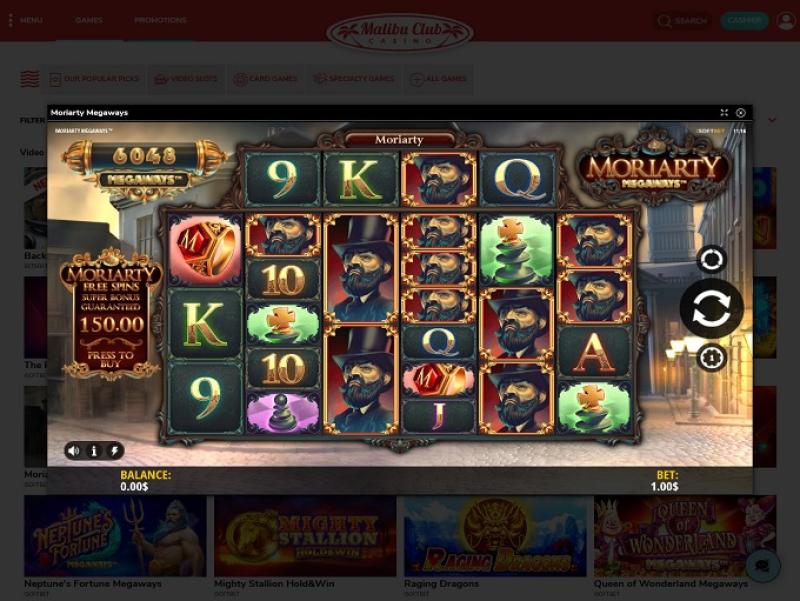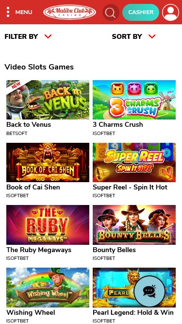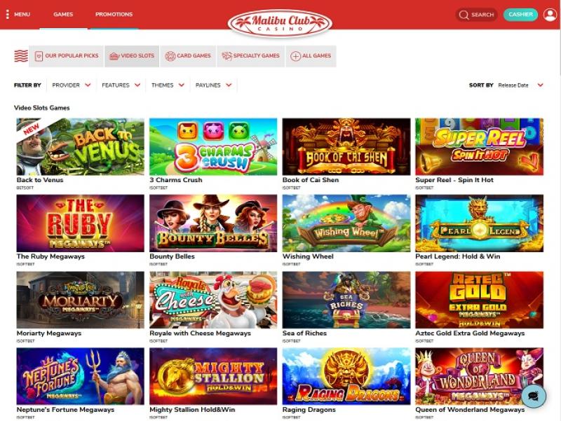 馬里布賭場由 BetSoft, Ezugi, playson, Endorphina, Wazdan, Booming Games, Booongo, LuckyStreak, Red Rake Gaming, Fugaso, Kalamba, BGAMING, Gluck Games, KA Gaming, Reevo, Tom Horn Gaming, Wager Gaming, BF Games, Gamevy, Arcadem, Dragon Gaming and Dragoon Soft提供支持,其遊戲透過可下載的軟體和即時遊戲平台提供。想要隨時隨地暢玩的玩家也可以造訪賭場的行動網站。