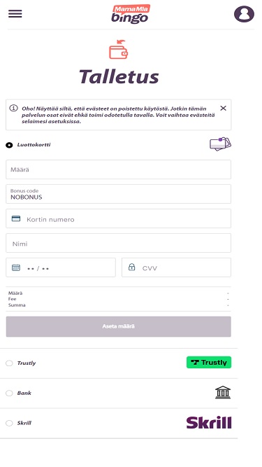 MamaMia Bingo 是一個線上賭博品牌,由 Evoke Gaming Ltd. 擁有和經營,該公司根據馬耳他法律註冊,由 MGA 和瑞典賭博監察局許可和監管。