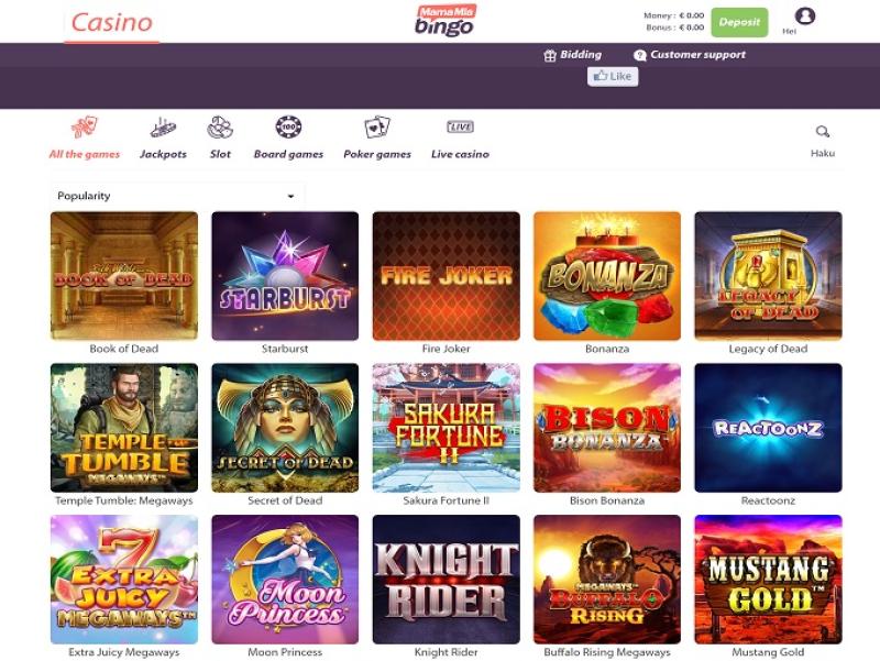 MamaMia Bingo 提供的高品質線上賭場遊戲由許多流行的 iGaming 品牌製作,例如:Evolution、Wazdan、Yggdrasil……遊戲庫還包含由較小的線上賭場軟體開發商創建的創新內容,透過這種方式,營運商為賭客提供遊戲多樣性。