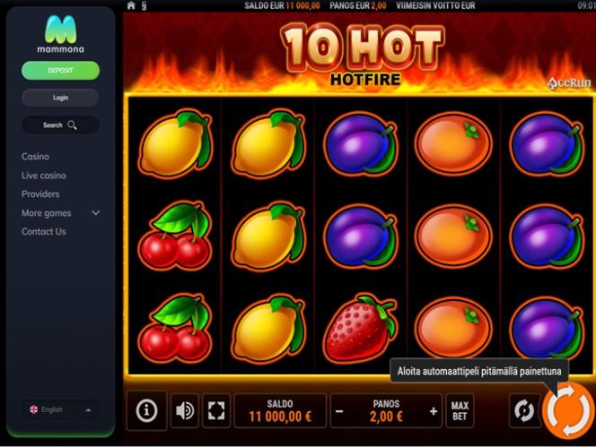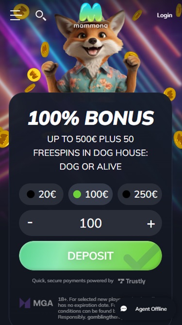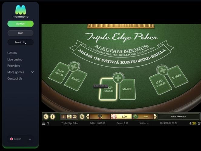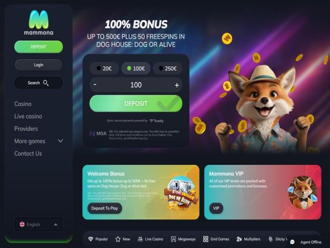 Mammona Kasino 受馬耳他博彩管理局監管並持有其執照。該品牌誠摯邀請芬蘭和挪威玩家造訪其平台,探索其提供的所有遊戲。