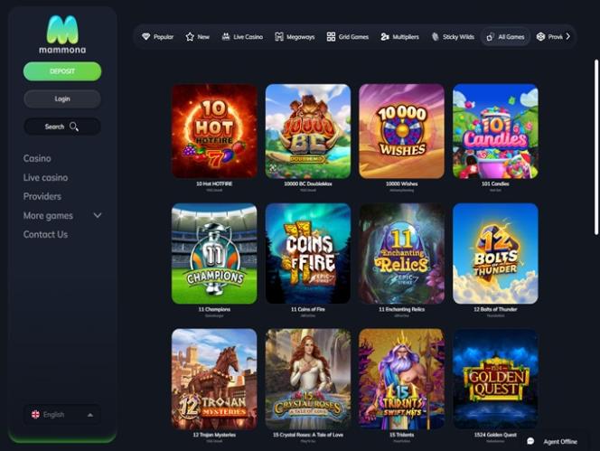 正因如此,Mammona Kasino 的網站上才囊括了超過 70 家遊戲工作室。如此眾多的供應商確保玩家能夠獲得幾乎無限量的娛樂選擇,並且能夠長期暢玩。值得一提的是,該品牌會定期更新其產品,並不斷為玩家提供新產品。