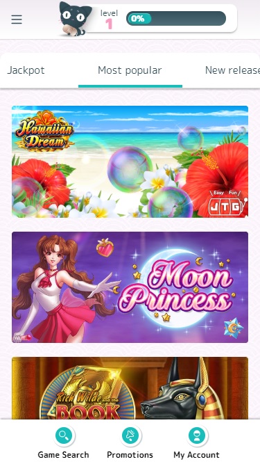 網站設有會員計劃,並提供可愛的動漫風格小貓。等級如下:青銅級、白銀級、黃金級、紅色級和彩虹級。這些等級的玩家在獎金、免費禮品、獎勵和返現方面將獲得更優的投注要求。
