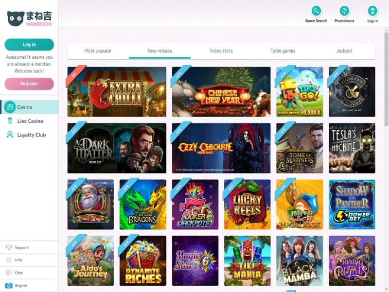 Manekichi 擁有令人印象深刻的老虎機遊戲庫,提供超過 900 款來自 Microgaming、NetEnt、Yggdrasil、Play'n GO 等品牌的遊戲。遊戲功能豐富多樣,您還可以贏得大型累積獎金,例如 NetEnt 的 Mega Fortune 和 Microgaming 的 Major Millions。此外,還提供行動端老虎機遊戲。