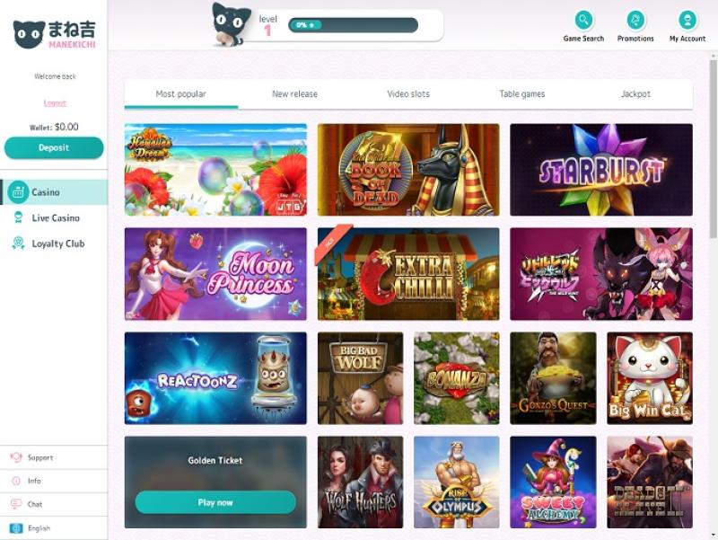 Manekichi Casino 由 Microgaming, Net Entertainment, BetSoft, Big Time Gaming, Evolution Gaming, Genesis Gaming, lightningboxgames, Oryx, Play'n GO, Quickspin, Rabcat, Relax Gaming, Yggdrasil, Nolimit City, Fantasma Games, FUGA Gaming, Kalamba, All41 Studios, Games Global, Gamomat, Just For The Win, Slingshot Studios, Golden Hero and Half Pixel Studios提供支持,其軟體透過網頁平台提供,可直接透過您的網頁瀏覽器載入。該網站還支援行動端遊戲,讓您在智慧型手機或平板電腦上暢玩。