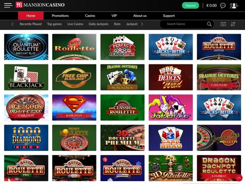 老虎機是Mansion Casino遊戲庫中最大的組成部分,賭場在其虛擬樓層提供數十款遊戲。這些遊戲包括品牌遊戲,例如漫威旗下的漫畫老虎機,以及《金剛》和《角鬥士》等電影主題遊戲。此外,賭場還提供多個高額累積獎金,獎金金額從幾百歐元到數百萬歐元不等。