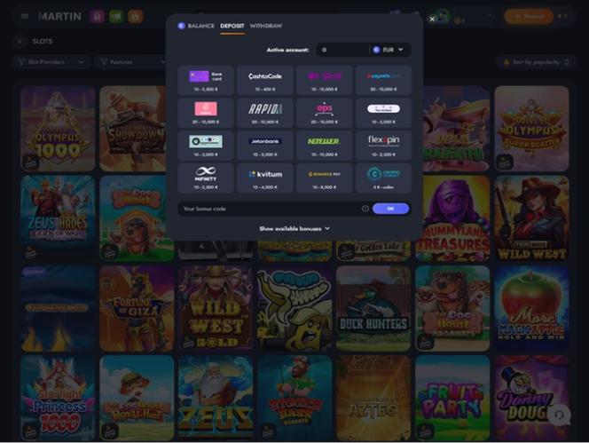 Martin Casino 是一個大型線上博彩網站,致力於為玩家提供豐富精彩的遊戲,包括真錢老虎機、真人荷官、桌上遊戲、速成遊戲以及體育博彩。該品牌接受來自德國、奧地利、瑞士和芬蘭的玩家,讓他們可以探索豐富的遊戲目錄和豐厚的促銷計劃,贏取豐厚的獎金。