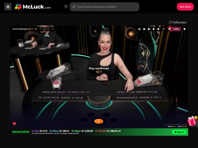 但這還不是全部。除了擁有豐富的線上老虎機遊戲庫外,McLuck 賭場還致力於滿足那些追求更沉浸式、更具氛圍體驗的玩家的需求。因此,您可以暢玩多種輪盤賭和二十一點遊戲,其中最受歡迎的是7 Seats Mcluck 二十一點、重力二十一點、美式輪盤賭和重力輪盤賭。