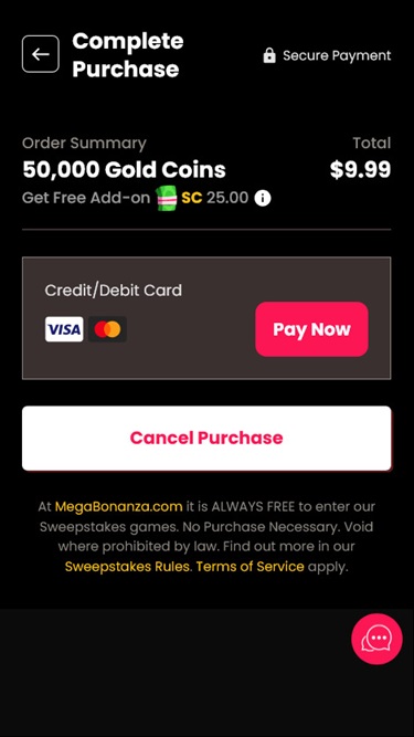 MegaBonanza 設有專屬商店,玩家可以購買各種包含免費抽獎幣的金幣禮包。玩家可以使用Visa或Mastercard購買任何禮包。