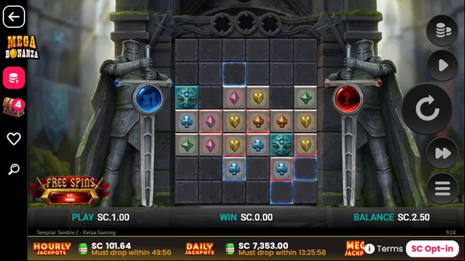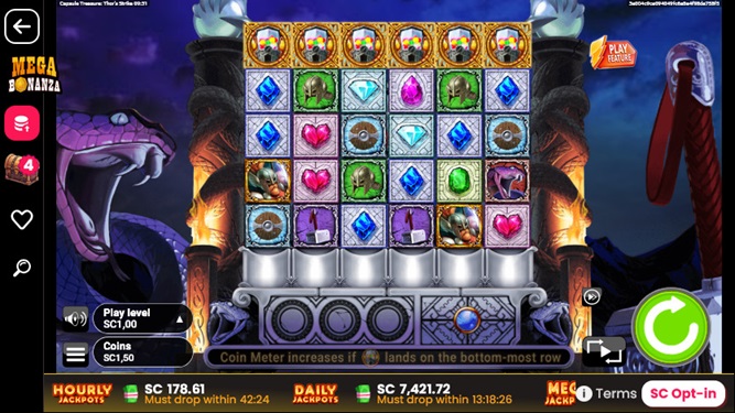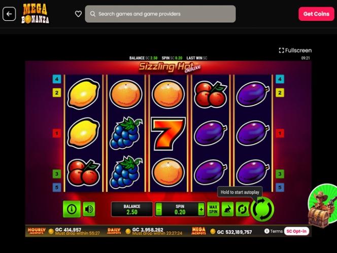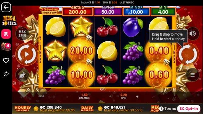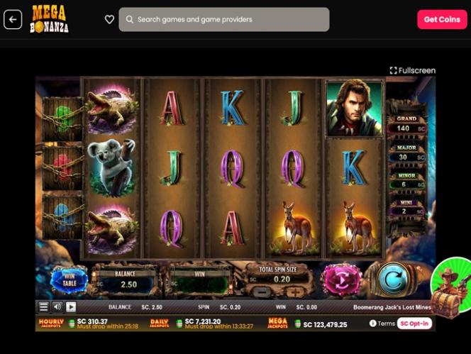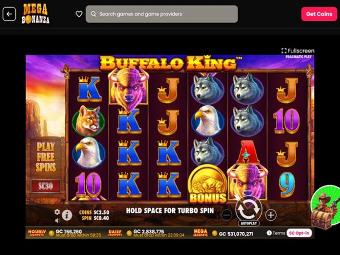 在 MegaBonanza,玩家可以體驗兩種不同的遊戲模式:金幣模式和抽獎幣模式。使用金幣時,玩家可以暢玩所有遊戲,但無需將金幣兌換成任何實體獎勵。