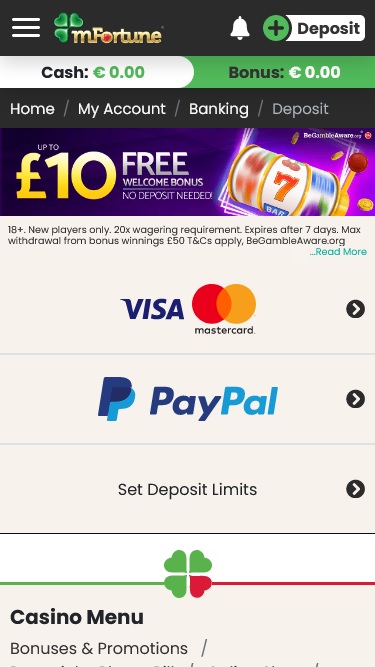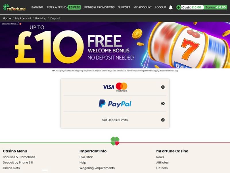 Banking銀⾏業務選項 的 mFortune Mobile Casino