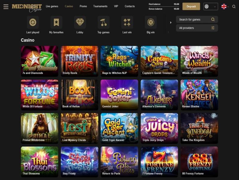 Midnight Casino 提供設備齊全的大廳,由一些最知名的線上賭場軟體開發商提供。