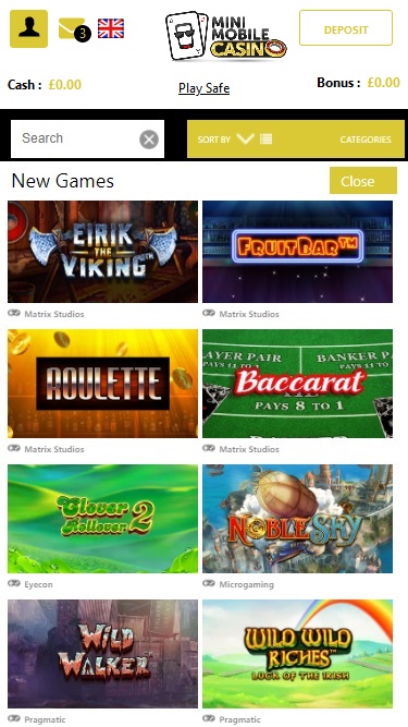 Mini Mobile Casino 由 Microgaming, Net Entertainment, Big Time Gaming, ELK Studios, EYECON, lightningboxgames, Realistic Games, Pragmatic Play, Skillzzgaming, Golden Rock Studios, Games Global, Blueprint Gaming, Merkur Gaming, NextGen, NYX Interactive, Inspired Gaming, Scientific Games, Iron Dog Studio, Foxium, Just For The Win, The Games Company, Rocksalt Interactive, 4ThePlayer, Crazy Tooth Studio and ReelFeel Gaming提供支持,其遊戲透過基於網頁的即時遊戲平台提供。鑑於該賭場秉承行動優先的理念,網站圖示醒目,易於手指操作。此外,Mini Mobile Casino 也支援桌上端遊戲,儘管外觀略遜一籌。Baccarat