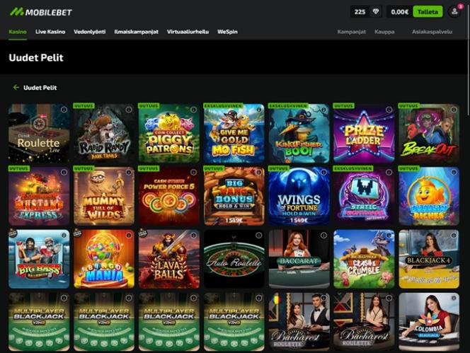 Mobilebet Casino 由 Microgaming, Net Entertainment, Playtech, BetSoft, 1x2gaming, Amatic Industries, Barcrest, Big Time Gaming, ELK Studios, Evolution Gaming, Genesis Gaming, lightningboxgames, Novomatic, Oryx, Play'n GO, Quickspin, Rabcat, Relax Gaming, Thunderkick, Yggdrasil, Wazdan, Booming Games, Stakelogic, Pragmatic Play, Nolimit City, Red Tiger Gaming, Skillzzgaming, Fantasma Games, Kalamba, Spin Games, Skywind, Triple Edge Studios, Northern Lights Gaming, Stormcraft Studios, Switch Studios, Electric Elephant Games, Pocket Games Soft, Bulletproof Games, All41 Studios, Gluck Games, Gameburger Studios, Neon Valley Studios, Golden Rock Studios, Shuffle Master, SpinPlay Games, HungryBear Gaming, Real Dealer Studios, GONG Gaming, Blue Guru Games, On Air Entertainment, Buck Stakes Entertainment, Games Global, 2by2 Gaming, Bally Technologies, bluberi, Blueprint Gaming, Endemol Games, GamesOS, Greentube, Leander Games, NextGen, NYX Interactive, Push Gaming, Tom Horn Gaming, WMS, Inspired Gaming, Gaming Realms, SG Interactive, Gamomat, Red7Mobile, Scientific Games, Reel Time Gaming, Bally Wulff, Iron Dog Studio, Old Skool Studios, Foxium, Betdigital, Just For The Win, Reflex Gaming, PearFiction Studios, Wild Streak Gaming, Slingshot Studios, Golden Hero, Fortune Factory Studios, Jade Rabbit Gaming, RubyPlay, 4ThePlayer, AvatarUX, Gamevy, Crazy Tooth Studio, NetGaming, ReelPlay, Japan Technicals Games, AGS Interactive, Alchemy Gaming, Rarestone Gaming, BB Games, Snowborn Games, Boomerang Studios, Hacksaw Gaming, Max Win Gaming, Gold Coin Studios, Bang Bang Games, Half Pixel Studios, Slotmill, Peter And Sons, Aurum Signature Studios, Lucksome Gaming, Area Vegas, RAW iGaming, Wishbone Games, Apparat Gaming, Spribe, Circular Arrow, Gaming Corps, HammerTime Games, Four Leaf Gaming, INO Games, Nailed It! Games, Atomic Slot Lab, Neko Games, Reel Kingdom, Oros Gaming, Indigo Magic, Light & Wonder and Kitsune Studios提供支持,其遊戲由基於網頁的即時遊戲網站提供支持,可透過智慧型手機或平板電腦的瀏覽器直接載入。您也可以透過桌面瀏覽器啟動遊戲,儘管網站的設計並非以桌面瀏覽器為主要遊戲方式。