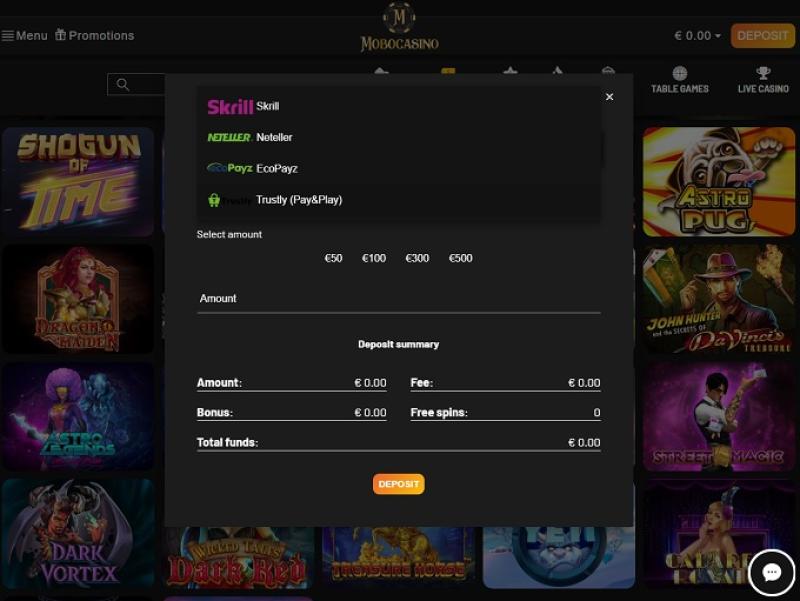 MoboCasino 由 Microgaming, Net Entertainment, BetSoft, Evolution Gaming, Ezugi, iSoftBet, Play'n GO, Yggdrasil, GameArt, Pragmatic Play, Games Global and NYX Interactive提供支持,其賭場遊戲透過基於網頁的即時遊戲平台提供,允許玩家透過網路瀏覽器載入遊戲和賭場平台。賭場還提供行動遊戲,讓您可以使用智慧型手機或平板電腦暢玩老虎機和一些桌面遊戲。