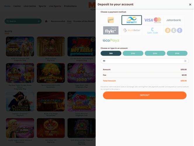 註冊流程簡潔明了。平台背景為白色,沒有太多視覺幹擾。所有賭場板塊都清晰可見,易於訪問。遊戲絕對是玩家關注的焦點。畢竟,我們來這裡就是為了玩遊戲,不是嗎?