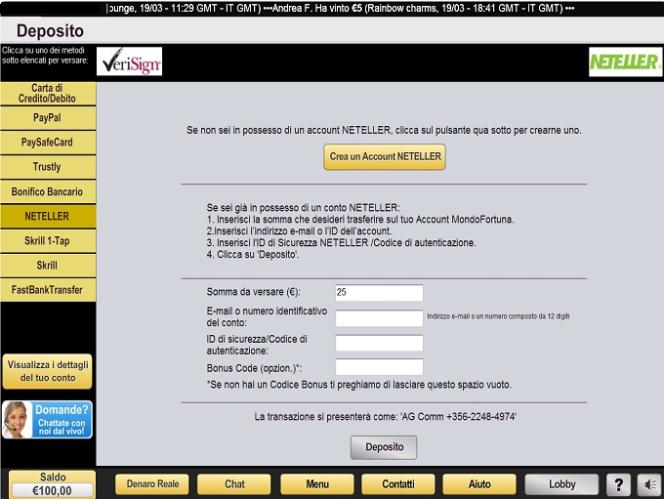 MondoFortuna 賭場由 NeoGames提供支持,賭場遊戲透過網頁平台提供。目前暫不支援行動端網站。Banking銀⾏業務選項 的 MondoFortuna