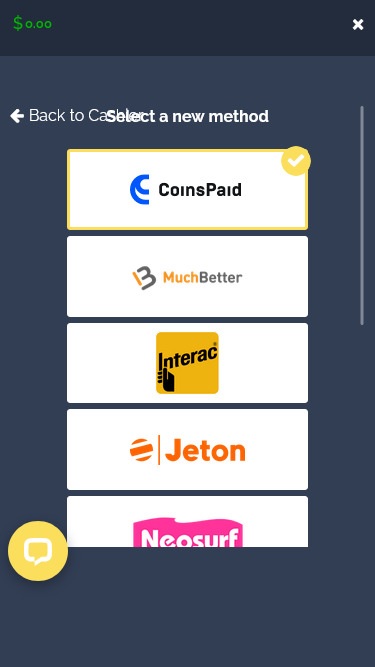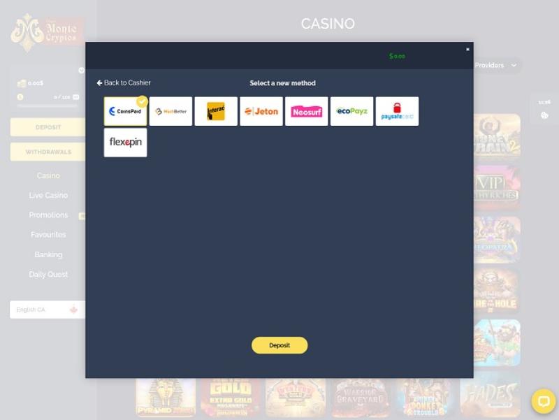 Banking銀⾏業務選項 的 MonteCryptos Casino