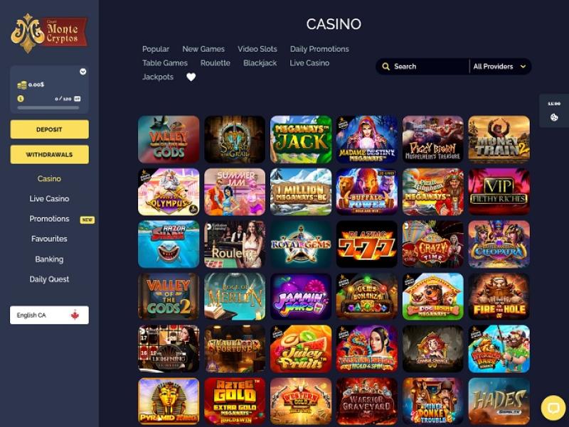 Montecryptos 賭場由 Microgaming, Net Entertainment, BetSoft, 1x2gaming, Amatic Industries, Big Time Gaming, ELK Studios, Evolution Gaming, Ezugi, Habanero Systems, Oryx, Play'n GO, Quickspin, Relax Gaming, Thunderkick, Vivo Gaming, Yggdrasil, Endorphina, Wazdan, GameArt, Betgames, Booming Games, PlayPearls, Pragmatic Play, Nolimit City, Felt Gaming, Red Tiger Gaming, Spinomenal, Fugaso, Kalamba, Triple Edge Studios, Northern Lights Gaming, Evoplay, Stormcraft Studios, OneTouch, Pocket Games Soft, Triple PG, Bulletproof Games, All41 Studios, Gluck Games, Neon Valley Studios, Golden Rock Studios, Swintt, SpinPlay Games, GONG Gaming, Blue Guru Games, Buck Stakes Entertainment, Caleta Gaming, Games Global, Amusnet Interactive, Wizard Games, 2by2 Gaming, Blueprint Gaming, Pariplay, Push Gaming, Tom Horn Gaming, Gamomat, Reel Time Gaming, BF Games, betiXon, Bally Wulff, Iron Dog Studio, Just For The Win, PearFiction Studios, Wild Streak Gaming, Slingshot Studios, Fortune Factory Studios, AvatarUX, Gamevy, Crazy Tooth Studio, SlotVision, Alchemy Gaming, Black Pudding Games, Snowborn Games, Boomerang Studios, Hacksaw Gaming, Max Win Gaming, Gold Coin Studios, Bang Bang Games, Half Pixel Studios, Aurum Signature Studios, Lucksome Gaming, Area Vegas, Bombay Live, Leap Gaming, Kiron, 3 Oaks Gaming, Wishbone Games, Spribe, Circular Arrow, HammerTime Games, Four Leaf Gaming, INO Games, Nailed It! Games, Neko Games, Live88 and PlayAce提供支持,其賭場遊戲透過網頁平台提供,無需下載任何軟體。網站介面簡潔明了,並且內建行動裝置支持,讓您隨時隨地暢玩行動裝置賭場遊戲。