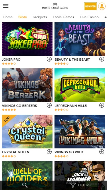 蒙特卡羅賭場由 Amaya, Microgaming, Net Entertainment, Barcrest, Big Time Gaming, Evolution Gaming, Genesis Gaming, lightningboxgames, Quickspin, Rabcat, Thunderkick, Yggdrasil, Booming Games, IGT, Games Global, 2by2 Gaming, Bally Technologies, bluberi, Leander Games, NextGen, Push Gaming and WMS提供支持,該平台透過其網頁平台為玩家提供種類繁多的遊戲。玩家可以直接透過網頁瀏覽器造訪蒙特卡羅賭場,也可以透過支援智慧型手機和平板電腦的行動網站存取。