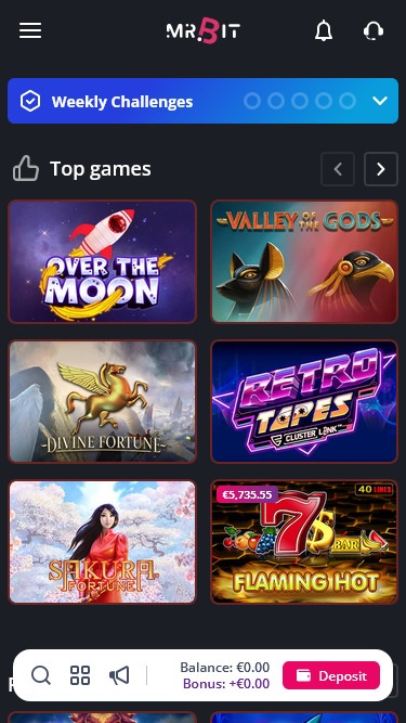 Mr Bit 賭場由 Microgaming, Net Entertainment, Playtech, 1x2gaming, Amatic Industries, Big Time Gaming, ELK Studios, Evolution Gaming, Ezugi, Genesis Gaming, Habanero Systems, iSoftBet, lightningboxgames, Oryx, Play'n GO, playson, Quickspin, Rabcat, Relax Gaming, Rival, Thunderkick, Yggdrasil, Endorphina, Wazdan, Realistic Games, GameArt, Betgames, Booming Games, Stakelogic, Pragmatic Play, Nolimit City, Red Tiger Gaming, Booongo, Spinomenal, Red Rake Gaming, Skillzzgaming, Fugaso, Belatra Games, Fantasma Games, SYNOT Games, Kalamba, Revolver Gaming, Skywind, Triple Edge Studios, Northern Lights Gaming, Fazi, Evoplay, Stormcraft Studios, Switch Studios, SA Gaming, Electric Elephant Games, Pocket Games Soft, All41 Studios, Gluck Games, August Gaming, Mascot Gaming, Gameburger Studios, Pulse 8 Studios, Neon Valley Studios, Golden Rock Studios, Swintt, TrueLab Games, Shuffle Master, SpinPlay Games, SmartSoft Gaming, Real Dealer Studios, GONG Gaming, Blue Guru Games, On Air Entertainment, Buck Stakes Entertainment, Games Global, Amusnet Interactive, 2by2 Gaming, Ainsworth, Bally Technologies, bluberi, Blueprint Gaming, CT Interactive, Igrosoft, Merkur Gaming, NextGen, NYX Interactive, Push Gaming, Tom Horn Gaming, WMS, SG Interactive, Gamomat, Scientific Games, Side City Studios, Reel Time Gaming, Authentic Gaming, BF Games, betiXon, Bally Wulff, Iron Dog Studio, Old Skool Studios, Foxium, Betdigital, Just For The Win, Storm Gaming Technology, PearFiction Studios, Apollo Games, Slingshot Studios, Golden Hero, Fortune Factory Studios, STHLM Gaming, RubyPlay, 4ThePlayer, Gamevy, Crazy Tooth Studio, NetGaming, ReelPlay, Zonelock, Alchemy Gaming, Black Pudding Games, Snowborn Games, Boomerang Studios, Hacksaw Gaming, Max Win Gaming, Gold Coin Studios, Bang Bang Games, Gamzix, Half Pixel Studios, Arcadem, Slotmill, SilverBack Gaming, Aurum Signature Studios, Area Vegas, Leap Gaming, 3 Oaks Gaming, Wishbone Games, Spribe, Print Studios, Gaming Corps, HammerTime Games, Four Leaf Gaming, INO Games, Nailed It! Games, Live 5, Atomic Slot Lab, Neko Games, Oros Gaming, Givme Games, Indigo Magic and Light & Wonder提供支持,賭場遊戲可透過網頁平台使用,您可以使用網路瀏覽器存取。網站開發完善,易於瀏覽。此外,它還內建行動端支持,方便您在手機或平板電腦上暢玩。