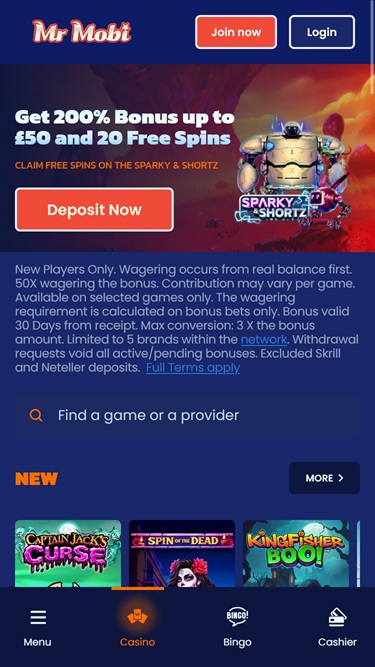 Mr Mobi Casino 由 Amaya, Microgaming, Net Entertainment, Playtech, 1x2gaming, Barcrest, Big Time Gaming, ELK Studios, EYECON, lightningboxgames, Novomatic, Play'n GO, Quickspin, Rabcat, Thunderkick, Wazdan, Realistic Games, Pragmatic Play, Nolimit City, Red Tiger Gaming, Spinomenal, Skillzzgaming, Fugaso, SYNOT Games, Skywind, Triple Edge Studios, Northern Lights Gaming, Stormcraft Studios, Switch Studios, All41 Studios, Gluck Games, Gameburger Studios, Pulse 8 Studios, Slot Factory, Neon Valley Studios, Shuffle Master, SpinPlay Games, KA Gaming, Real Dealer Studios, GONG Gaming, On Air Entertainment, Buck Stakes Entertainment, Games Global, 2by2 Gaming, Ash Gaming, Blueprint Gaming, Greentube, NextGen, NYX Interactive, ProgressPlay, Tom Horn Gaming, WMS, Inspired Gaming, SG Interactive, Red7Mobile, Scientific Games, Reel Time Gaming, BF Games, Iron Dog Studio, Old Skool Studios, Foxium, Betdigital, Just For The Win, PearFiction Studios, Wild Streak Gaming, Slingshot Studios, Fortune Factory Studios, AvatarUX, Gamevy, Crazy Tooth Studio, ReelPlay, Alchemy Gaming, Rarestone Gaming, Black Pudding Games, Snowborn Games, Hacksaw Gaming, Max Win Gaming, Gold Coin Studios, Bang Bang Games, Half Pixel Studios, Eurostar Studios, Aurum Signature Studios, Lucksome Gaming, Area Vegas, Leap Gaming, TaDa Gaming, Wishbone Games, Circular Arrow, HammerTime Games, INO Games, Nailed It! Games, Neko Games, Reel Kingdom, Oros Gaming, Light & Wonder and Playzia提供支持,其遊戲透過基於網路的平台提供,並直接傳送到您的行動裝置。