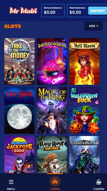 Mr Mobi Casino 提供大量視訊和經典老虎機遊戲,所有遊戲均經過精心設計,以適應您設備的小螢幕。 Net Ent、Microgaming、Playtech、Ash Gaming 等品牌的遊戲皆可在桌上型電腦和行動裝置上暢玩。