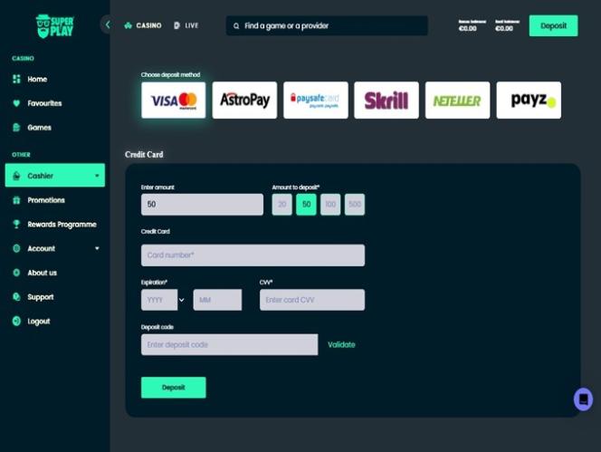 Banking銀⾏業務選項 的 Mr SuperPlay Casino