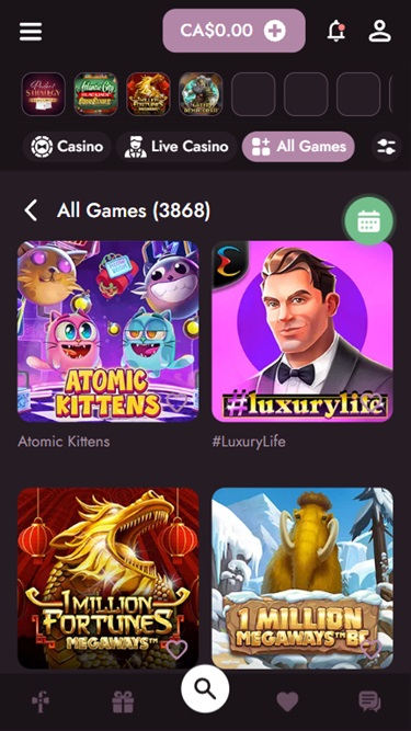 所有可用的賭場遊戲都井井有條。以下是部分類別:獎金遊戲、累積獎金、新手遊戲、遊戲系列、高波動性、贏或崩盤、經典老虎機、桌上遊戲、視訊撲克、虛擬體育等等。