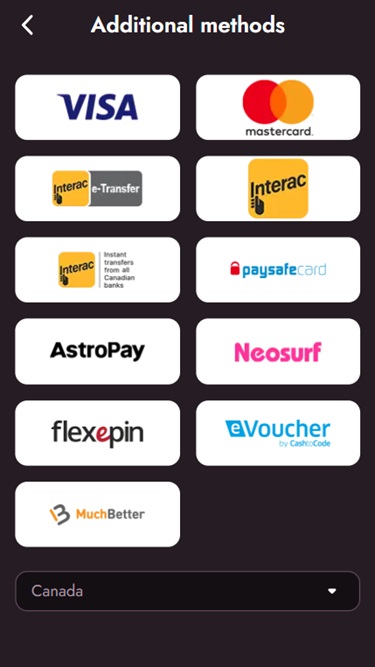 在我們訪問時,賭場出納員包括各種線上支付系統和傳統銀行選項,如支付卡、電子錢包(如 Skrill 和 Neteller)、 Interac、SPEI…